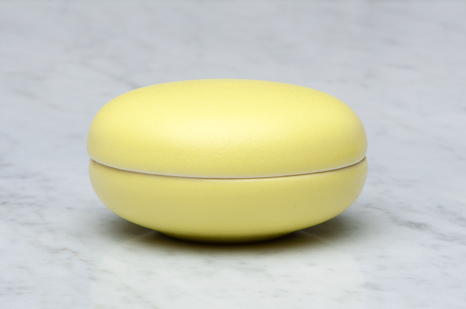 Material: Cast stoneware with a matte yellow glaze. Slight variations in color and texture may occur.