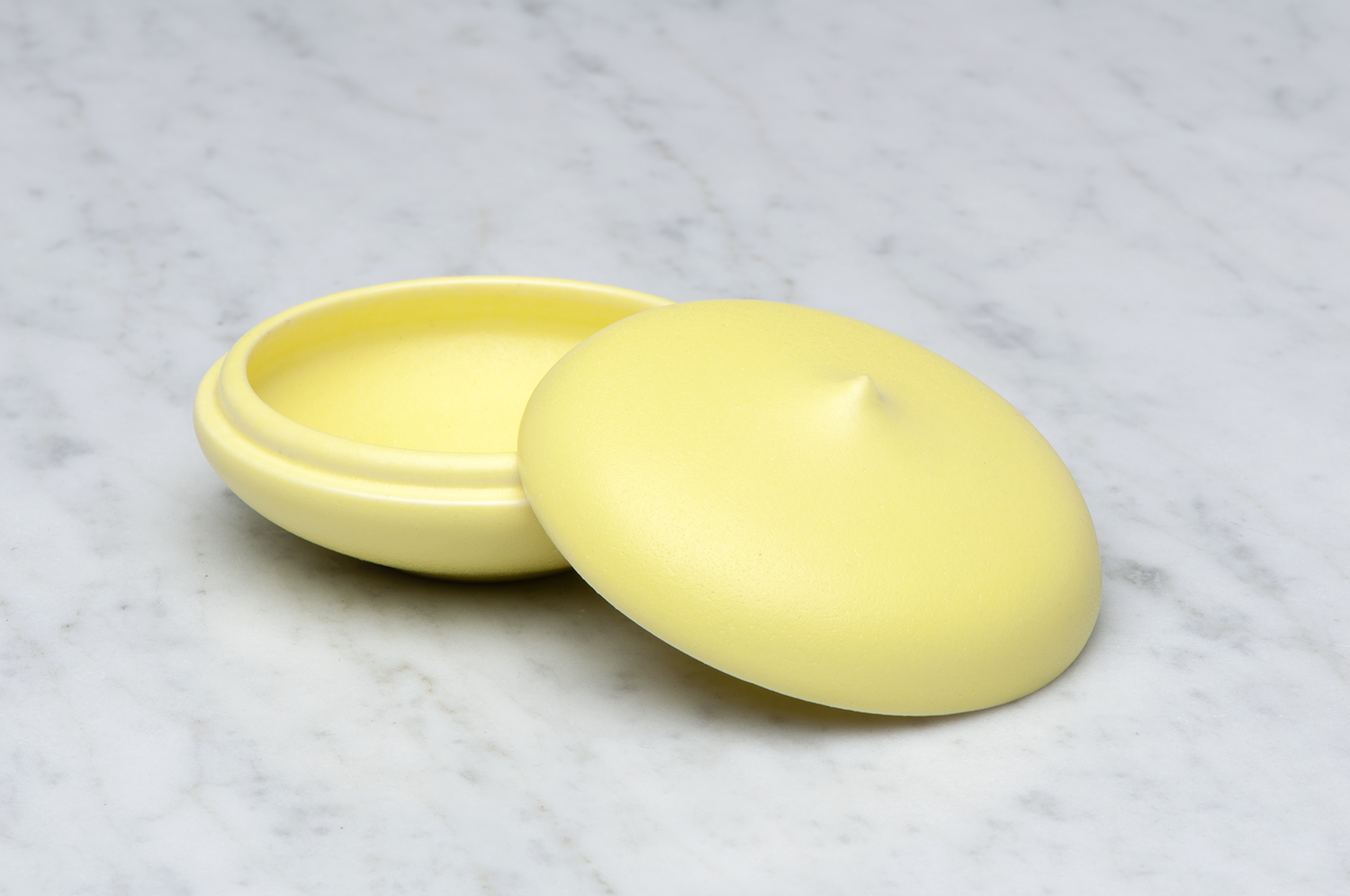 Material: Cast stoneware with a matte yellow glaze. Slight variations in color and texture may occur.