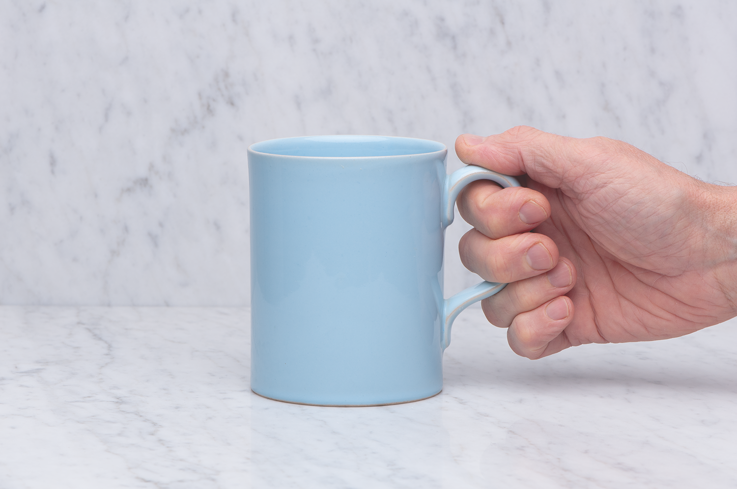 Large tea mug with a glossy, opaque light blue glaze. The mug is sold exclusively in this online store.